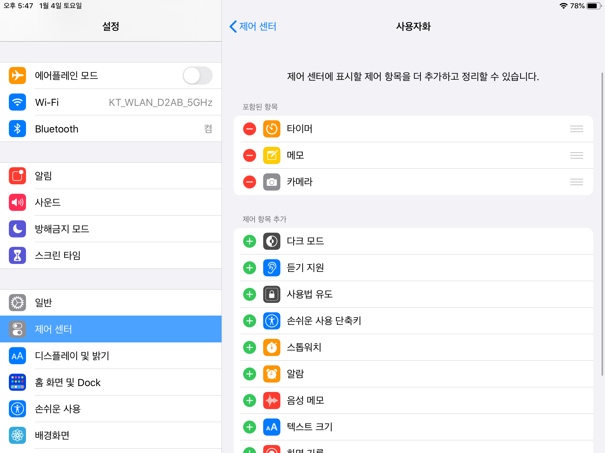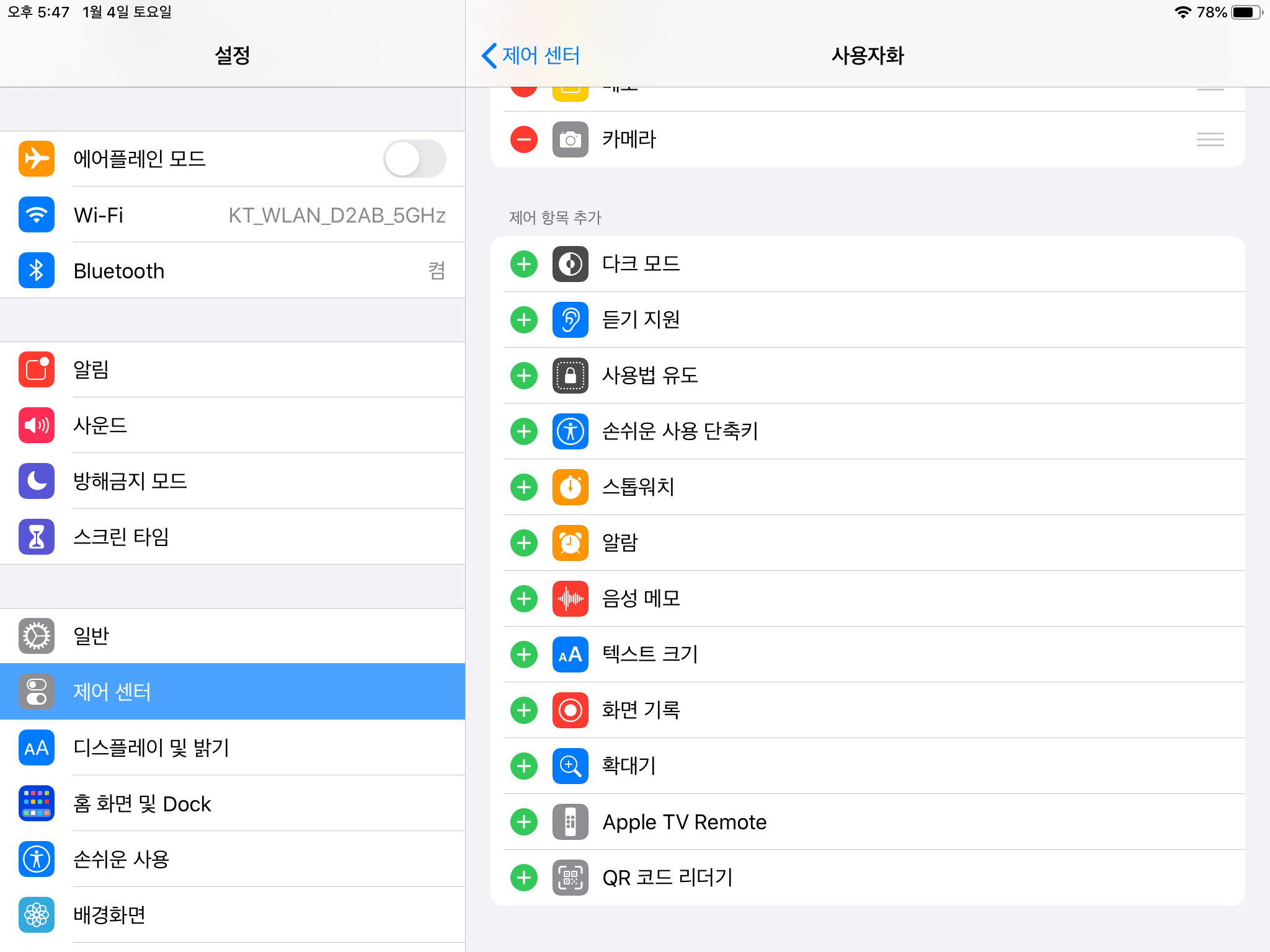 분들이라면 익숙한 제어센터의 기능을 조절하는