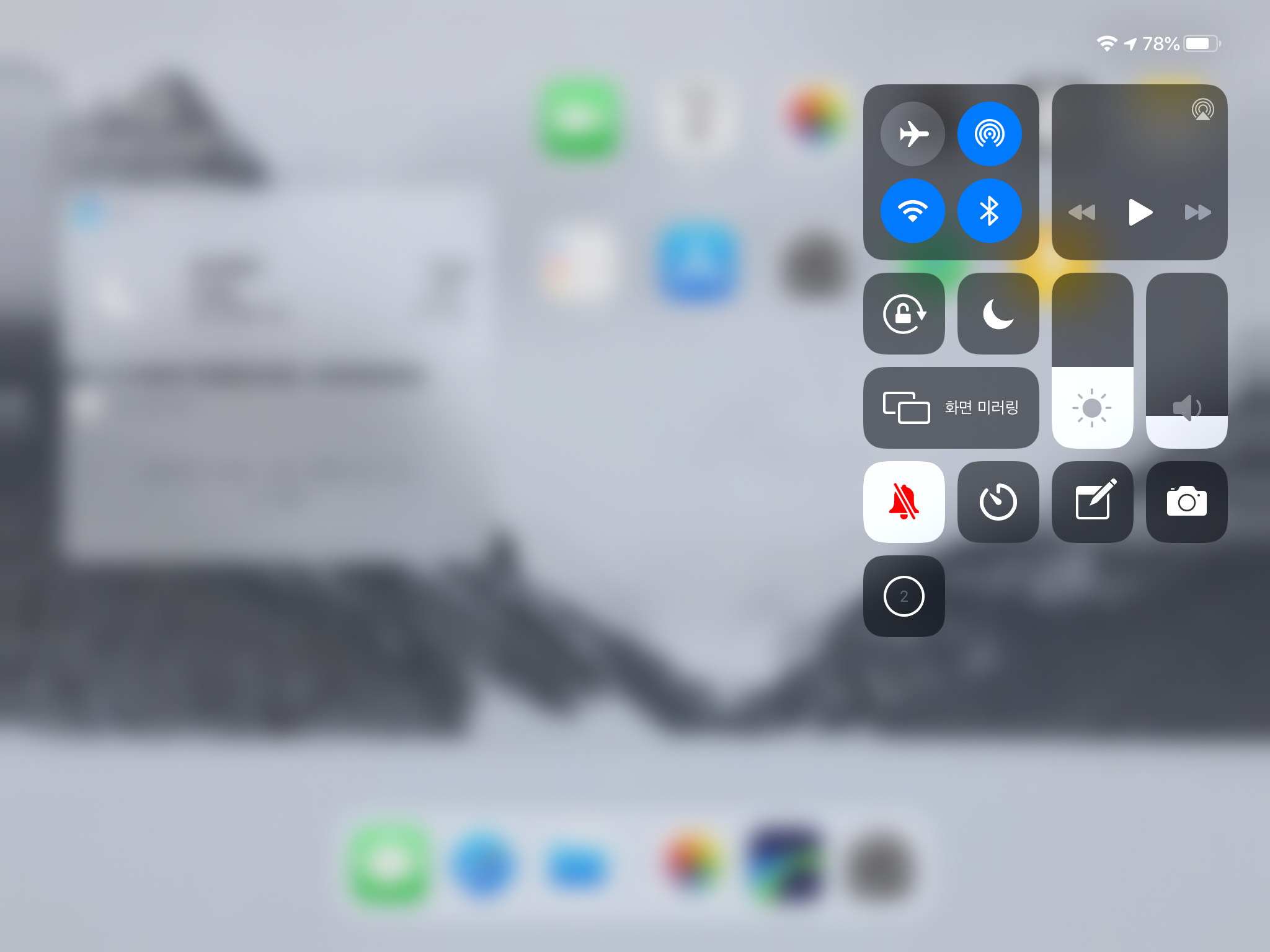 오른쪽 상단을 내려서 보면 제어센터를