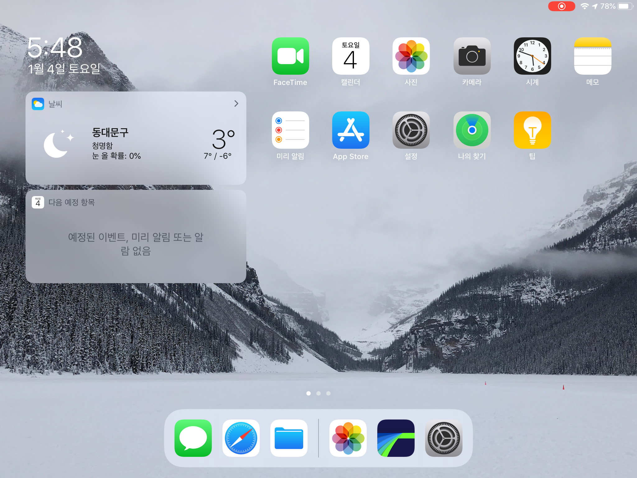 넣은 모드인데요. 알람 기능 밑의 동그란 점