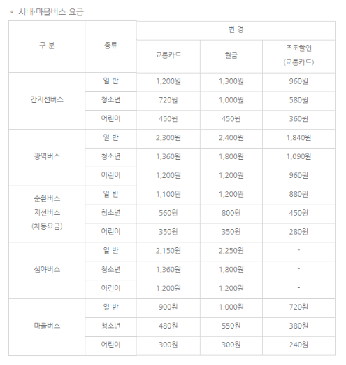 따라서, 서울시 버스요금도 버스 및 노선별로 다르게 책정이 되고 있어요