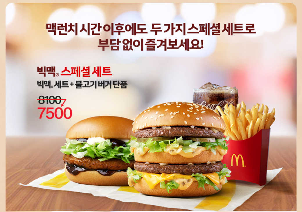 해당 7가지 종류 세트 구성들로만 할인이 되고요. 해당 맥런치 시간에 방문하여 주문을 하셔야 할인된 가격에 주문을 할 수 있답니다. 일부 지역 및 맥딜리버리는 적용이 되지 않는다는 점 잊지마시구요!